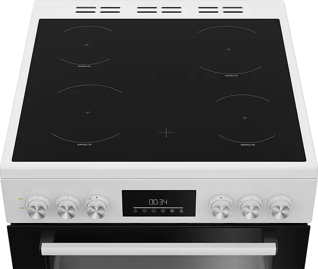 The touch control white LED display with built-in timer keeps you fully in control, ensuring precise cooking times and perfect results. Cleaning is made easier thanks to SimplySteam™, which uses steam to soften burnt-on food and grease for effortless maintenance. The four-zone ceramic hob with Rapidlite zones heats quickly and efficiently, while residual heat indicators provide added peace of mind after cooking.